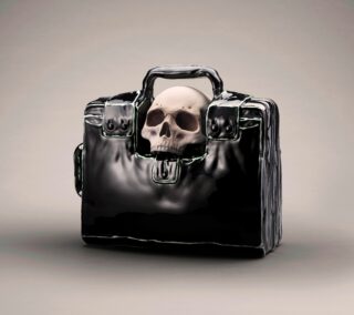 OA Krimmel aus Stuttgart erregte mit seiner provokanten Installation besondere Aufmerksamkeit. Seine Arbeit „Extinction to go / The Football“ stellt eine kunstvolle Reproduktion des präsidialen Atomkoffers dar, der mittels modernster 3D-Drucktechnik entstanden ist. Das Werk, welches im Ausstellungsbereich für „toxische Habitate“ präsentiert wird, trägt auf seiner Vorderseite einen Football, der zur Rückseite hin in die eindringliche Symbolik eines Totenschädels morpht.