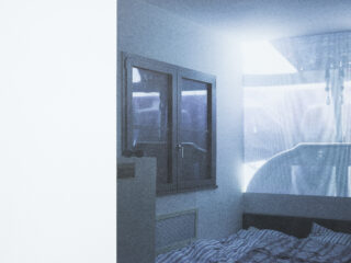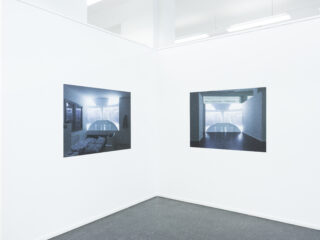 Die Installation „Zwischen Gedanke und Dokument“ besteht aus 2 Prints, den Raumansichten und 3 Fotoheften, den Ansichtsexemplaren und begleitendem Katalog. Die Raumansichten helfen, die Fotografie aus der Distanz zu betrachten. Sie verweisen auf die Möglichkeit des Wahrnehmungswechsels zwischen Bildraum und Bildfläche. Die Ansichtsexemplare zeigen Zusammenstellungen von Fotos aus aktuellen Projekten. Die Bilder in den Heften entstanden 2024/2025 in Mailand.