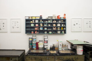 Die Werkstatt ist für vier studentische Arbeitsplätze ausgerichtet (Korrex- und Grafix-Andruckpressen).