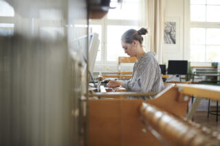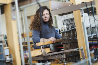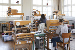 An den manuell- und computergesteuerten Webstühlen der Werkstatt für Weberei wird der visuellen, taktilen und wertschöpferischen Vielfalt von Gewebequalitäten künstlerisch, kreativ und innovativ begegnet. Der Umgang mit Garnen, Materialien und Farben im Zusammenhang mit den technischen Gegebenheiten der Weberei eröffnet immer neue, oft überraschende gestalterische Möglichkeiten und lädt zum Experimentieren ein.